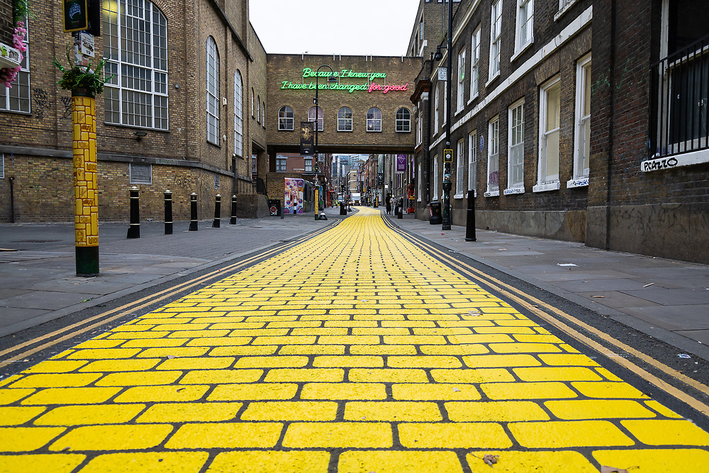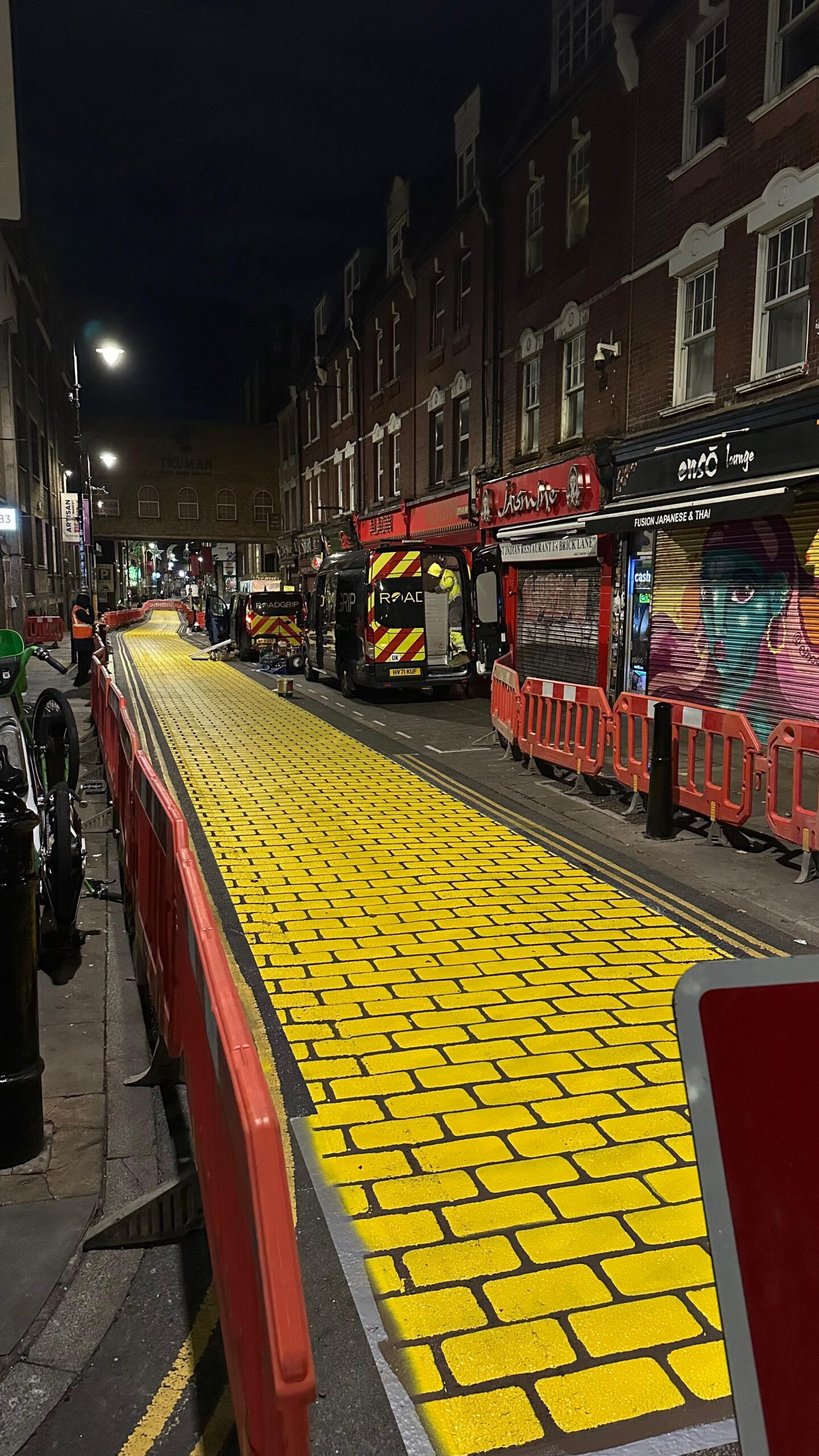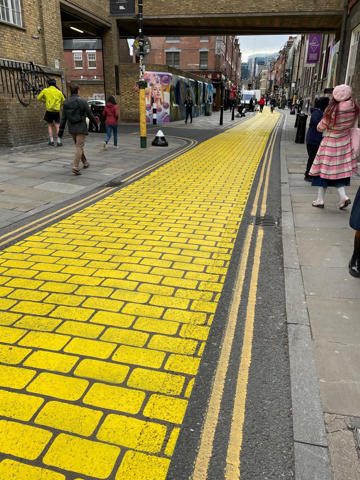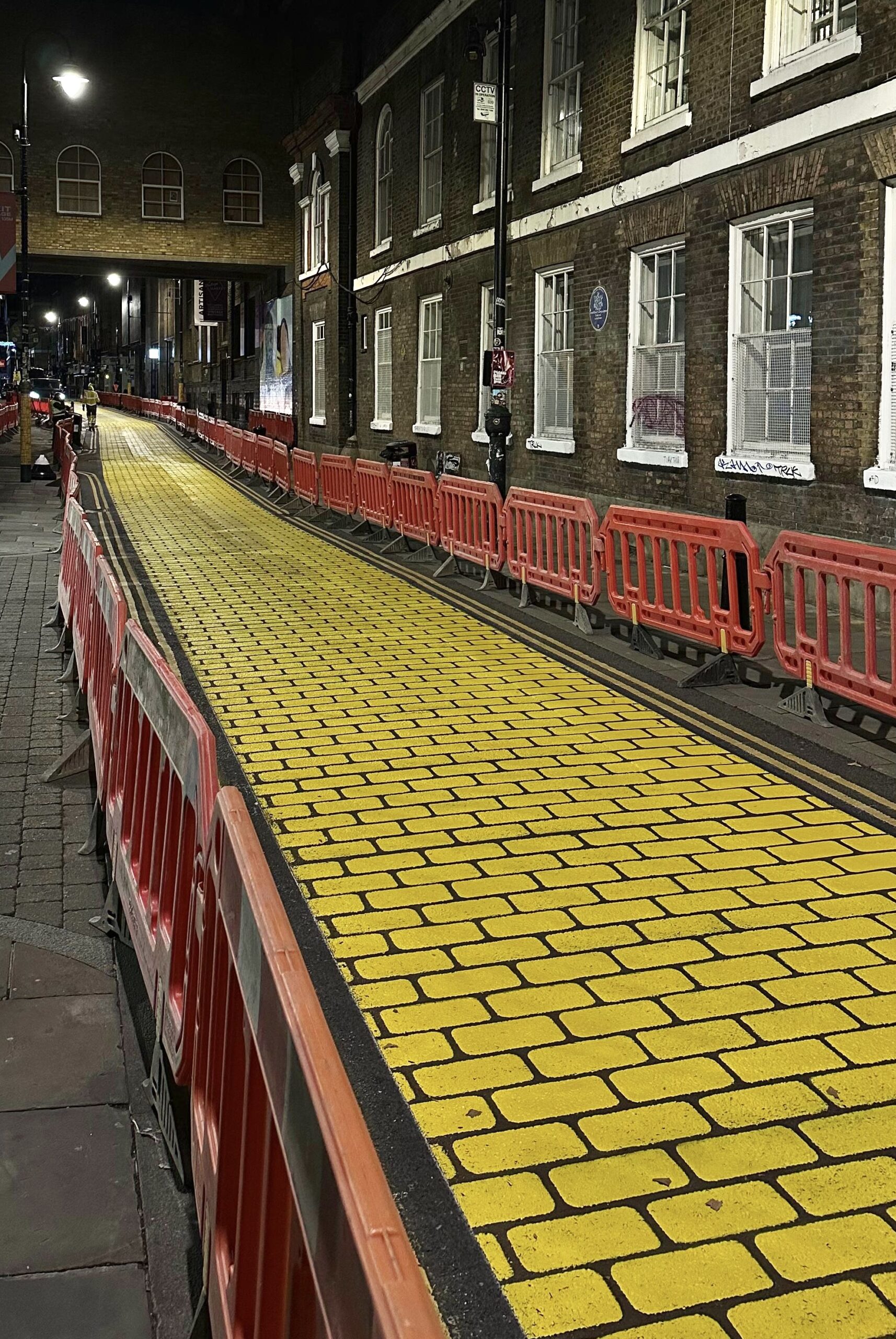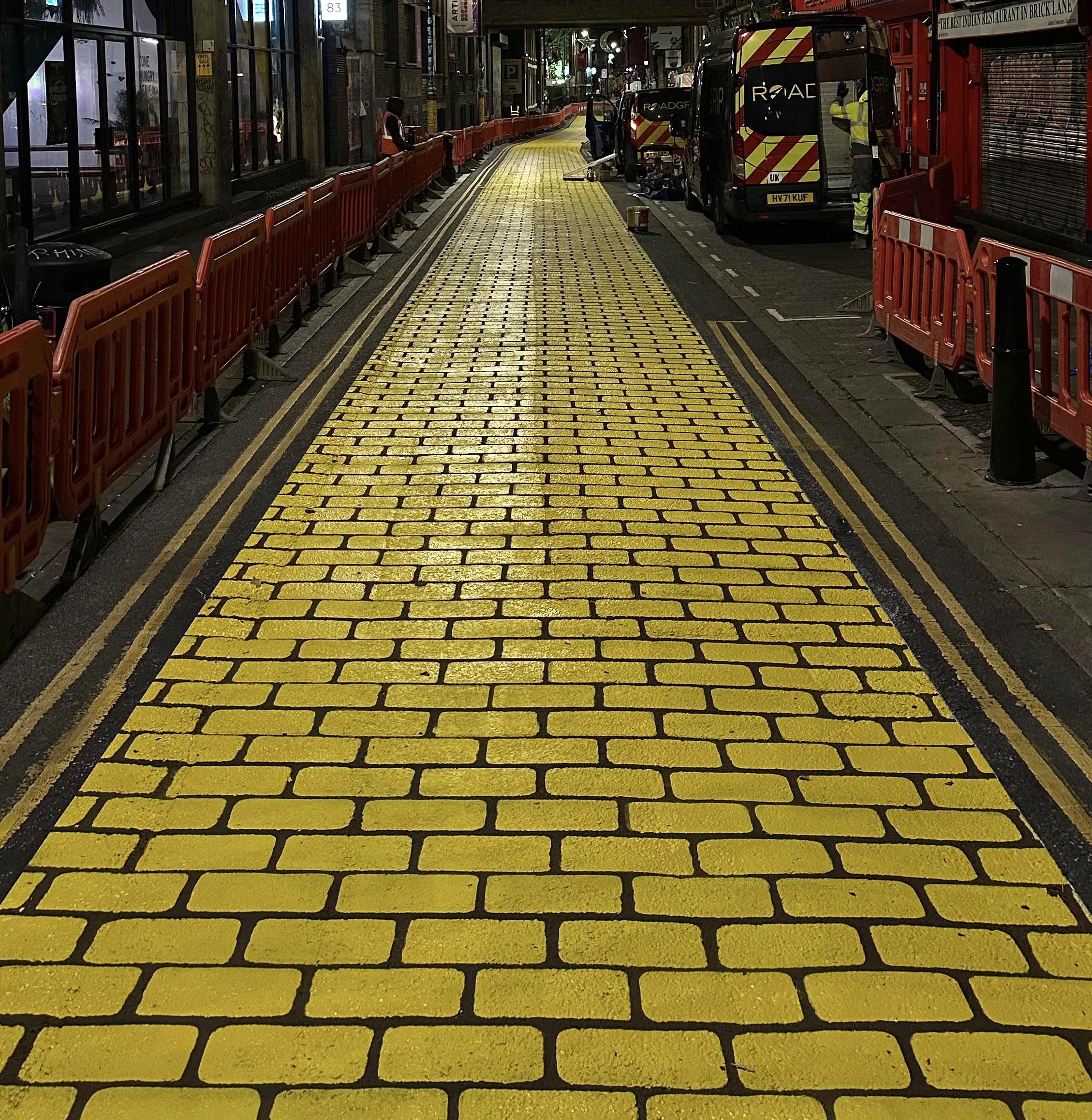 The Yellow Brick Lane installation will remain in place for two weeks before we return to carefully remove the paint and restore the street to its original finish.