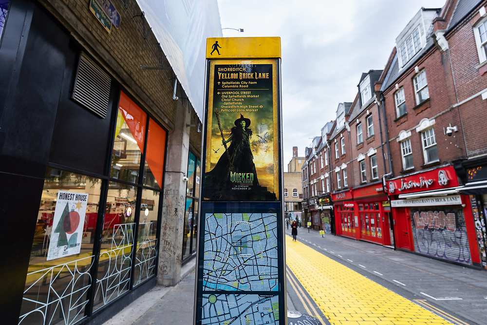 Working with Organic Publicity on behalf of Universal, our team transformed Brick Lane into ‘Yellow Brick Lane’ to pay tribute to the film’s most famous symbol, the yellow brick road, by turning 110 metres of London roadway into a dazzling, golden cobbled pathway through one of the capital’s most vibrant neighbourhoods.