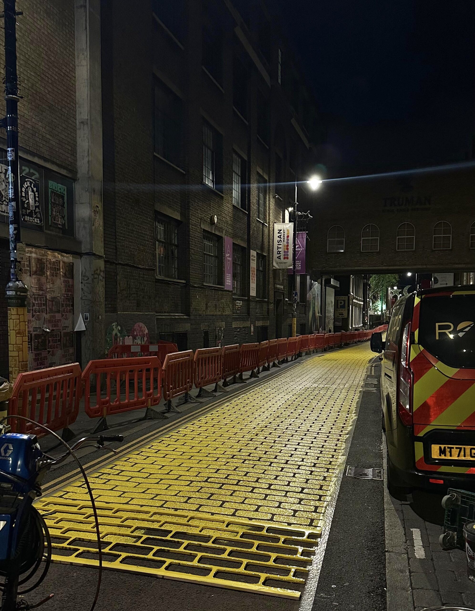 With Brick Lane under a 24-hour closure, our 3-person team worked through the night alongside other artists contributing to the Brick Lane Wicked Project, ensuring the street was ready for the morning reveal.