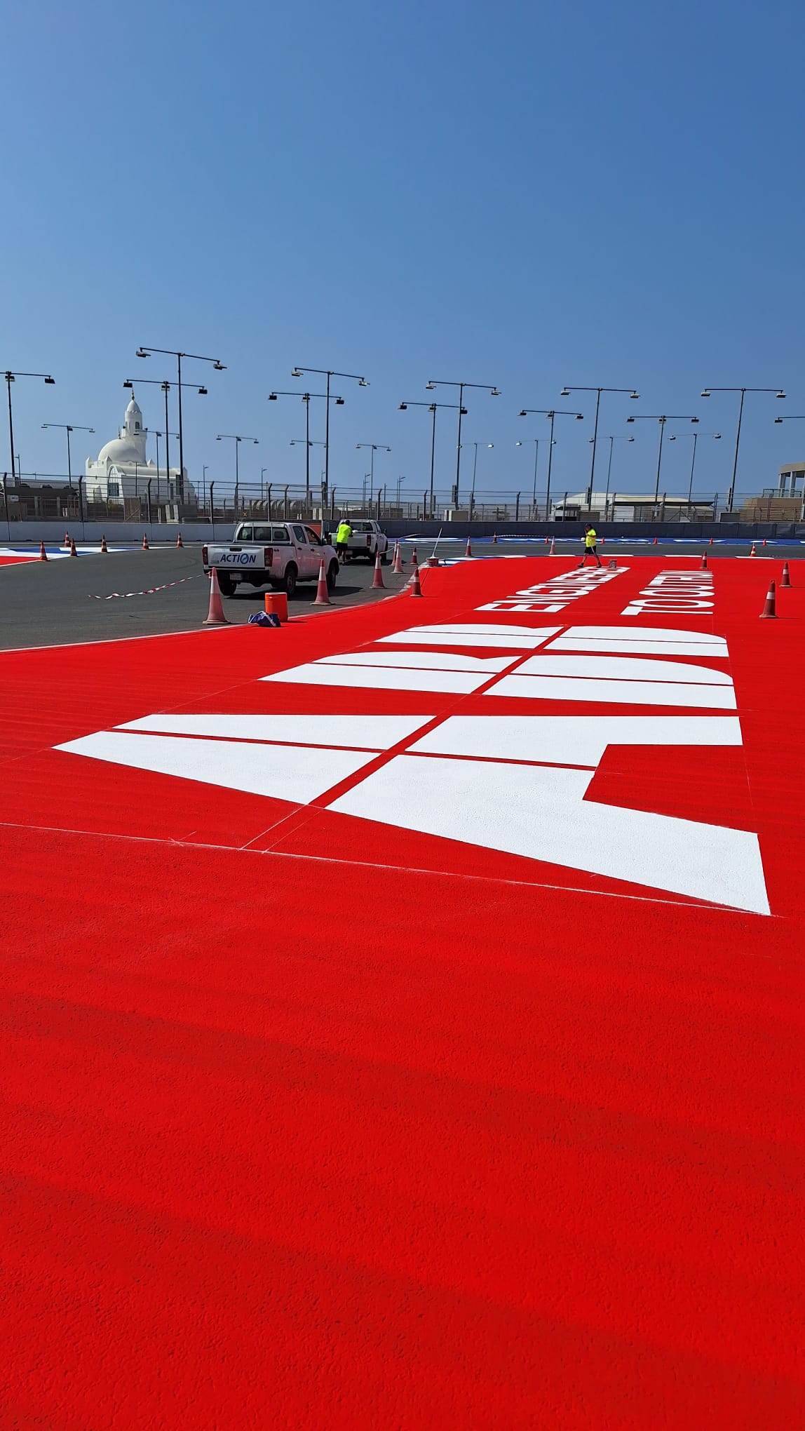 Known as one of the fastest and most visually striking street circuits in the world, Jeddah demands absolute precision, both in performance and presentation. From large-scale run-off designs to sponsor branding and sporting lines, every element of the circuit required careful planning, accurate setting out and flawless application.